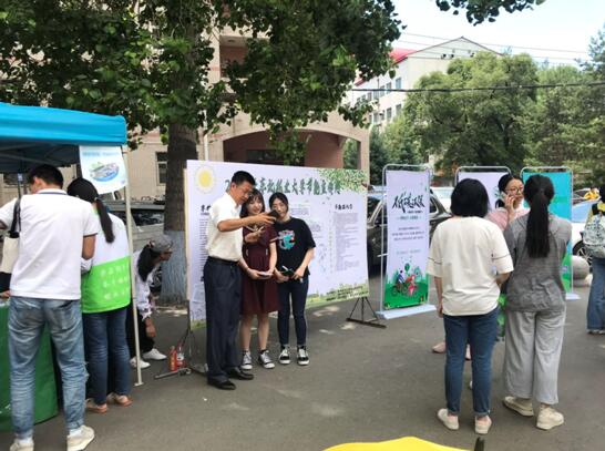 6月17日我校国有资产管理处联合绿色使者志愿者协会于学校俭德园门前,举办了“节能低碳,绿色东林”主题节能宣传活动。