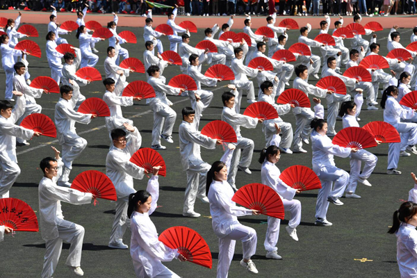 开幕式检阅中,庄重威严的国旗仪仗队、英姿飒爽的刀旗队、青春洋溢的花束队以及参加比赛的各支代表队,穿着整齐的服装,喊着嘹亮的口号,迈着矫健的步伐依次走过主席台,接受学校领导和师生的检阅。