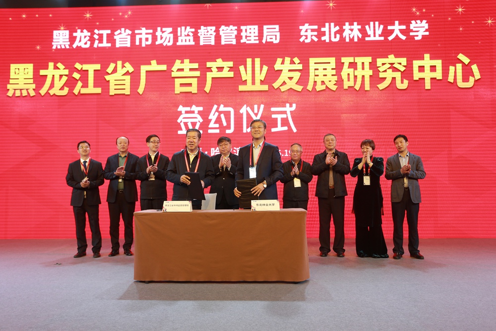 论坛上,举行了隆重的签约仪式,我校副校长雒文虎与黑龙江省市场监督管理局巡视员马文博作为代表正式签署协议,合作共建“黑龙江省广告产业发展研究中心”。该中心旨在充分发挥高校人才和科研优势,调动企业、社会组织、广告媒介等积极参与广告产业数据平台建设,探索建立我省广告产业可持续发展机制,加强广告产业发展分析研判,全面提升龙江广告产业创意、设计、制作、宣传水平,为龙江全面振兴、全方位振兴提供数据支撑和产业服务。