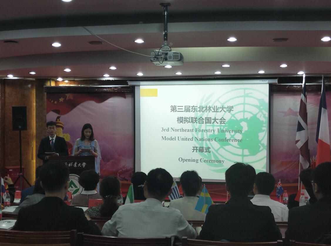 为深入学习贯彻习近平总书记在纪念五四运动100周年大会上的重要讲话精神,东北林业大学模拟联合国协会以“新时代、新青年、新声音”为主题,举办了第三届东北林业大学模拟联合国大会。5月17日上午,开幕式在东北林业大学动资楼331国际会议厅举行。