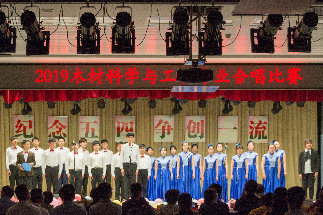 合唱比赛分为上下两个半场进行,木材科学与工程专业17个班级在老师的带领下,演唱了《黄河大合唱》《精忠报国》等经典爱国曲目以及《最美的太阳》《青春修炼手册》等富有青春活力的歌曲。激昂的歌声回荡在会场中,有憧憬,有激情,有奋斗,有拼搏,更有着与祖国和时代共同前行的无限希望,展现了木材科学与工程专业学生卓越的风采和良好的精神面貌。