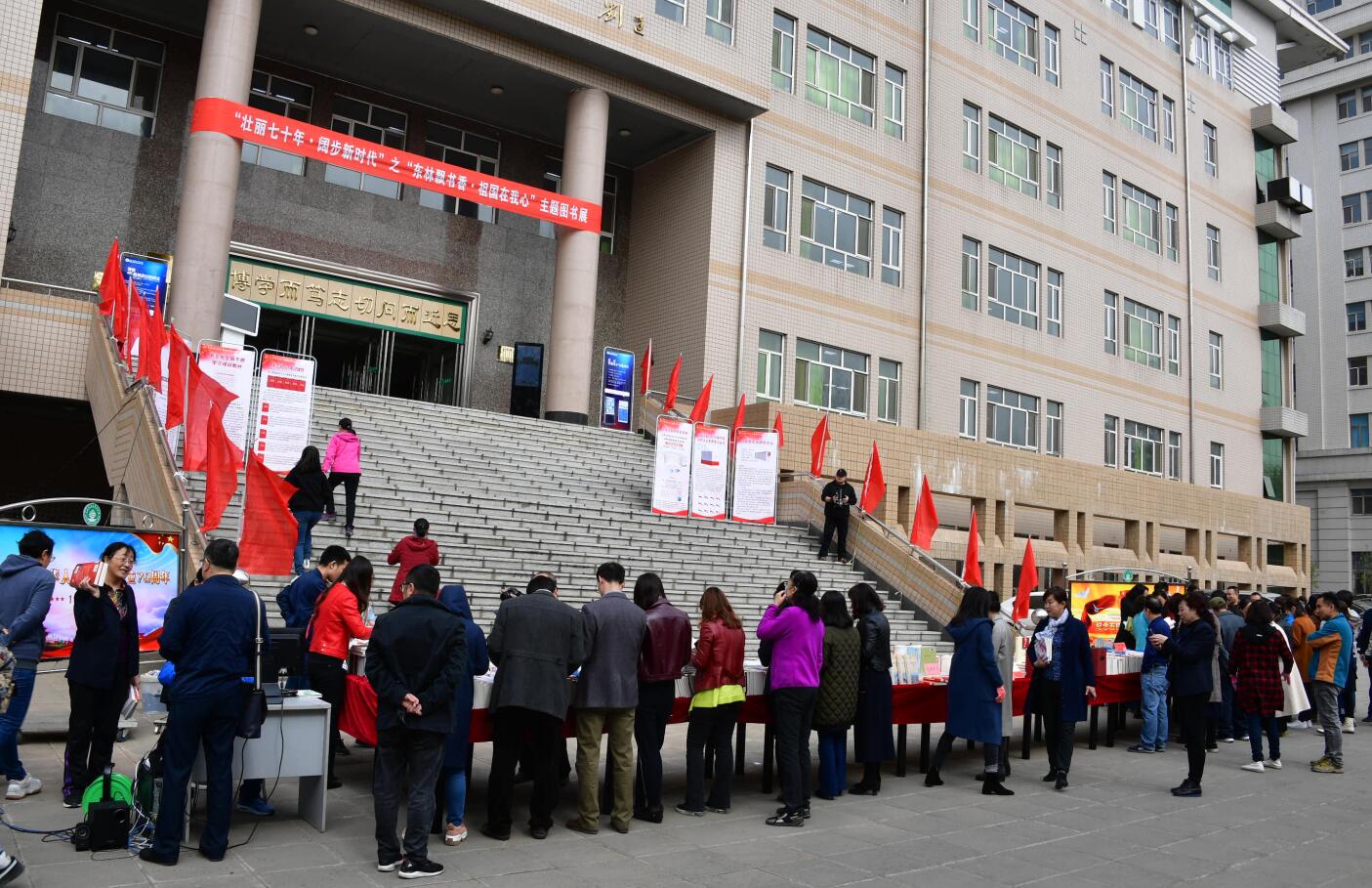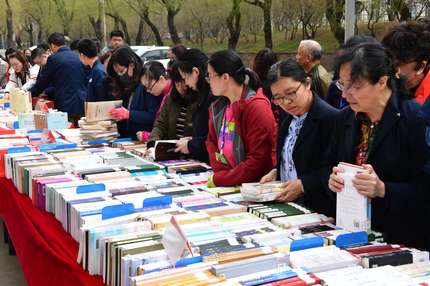 据悉,为了使参展图书主题明确、内容丰富,图书馆党总支2018年年底就启动了采购任务,经过严格把关、仔细筛选、周密筹备,本次图书展共展出2800余册。4月23日当天,在图书馆停车场进行现场展示、借阅,其后一周,书展将转移到图书馆二层大厅内,方便师生借阅需求。