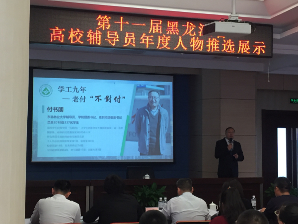 本次推选活动由省委教育工委、省教育厅组织,共有来自65所高校的65名辅导员参评,通过资格审查、专家匿名评审、选手现场述职答辩等环节,按照成绩排序,评选出黑龙江省高校辅导员年度人物10人、年度人物提名奖10人、年度人物入围奖10人。付书朋以第四名的成绩顺利入选。