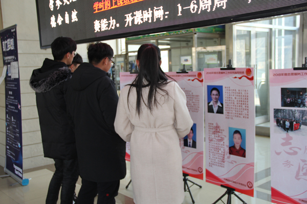 同学们浏览志愿服务先进集体和个人的事迹展板