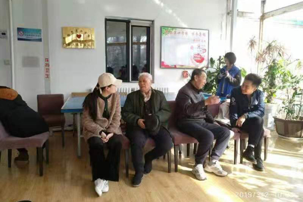 志愿者在老年公寓陪老人聊天