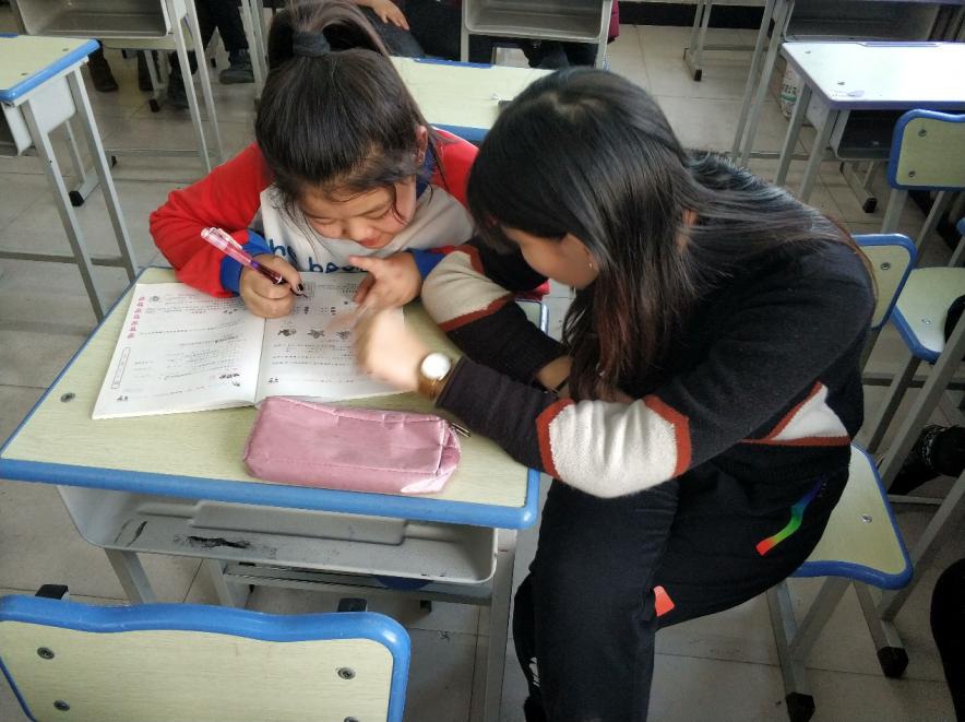 我校大学生志愿者一对一辅导孩子们做假期作业