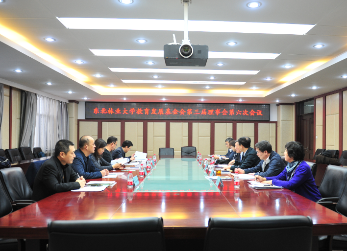 12月21日下午,东北林业大学教育发展基金会第三届理事会第六次会议在综合办公楼808会议室召开。基金会理事长吴国春,党委副书记、副理事长陈文慧,党委副书记、纪委书记、副理事长蔺海波,副校长、理事雒文虎及第三届理事会理事、监事参加了会议,校长李斌出席会议并致辞。会议由基金会理事长吴国春主持。