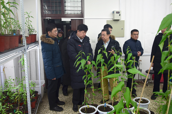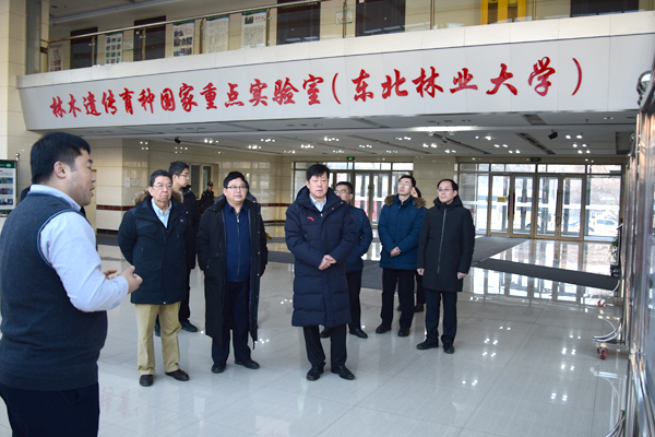 我校党委书记张志坤、党委副书记王玉琦、林木遗传育种国家重点实验室主任姜立泉教授陪同郭春鸣一行来到学校科技楼。