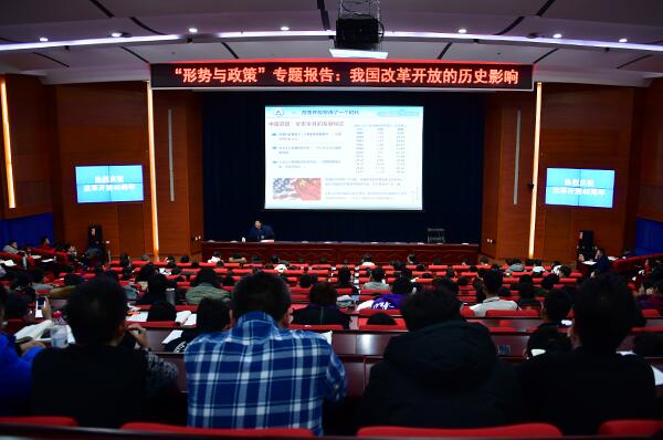 两个多小时的时间里,张书记用翔实的资料,丰富的案例,讲述了改革开放的历史影响,既有理论的高度,又有历史的厚度,生动形象,入脑入心。学生们纷纷表示,要从历史中汲取继续前进的力量,好好学习,将来为祖国发展贡献自己的力量。
