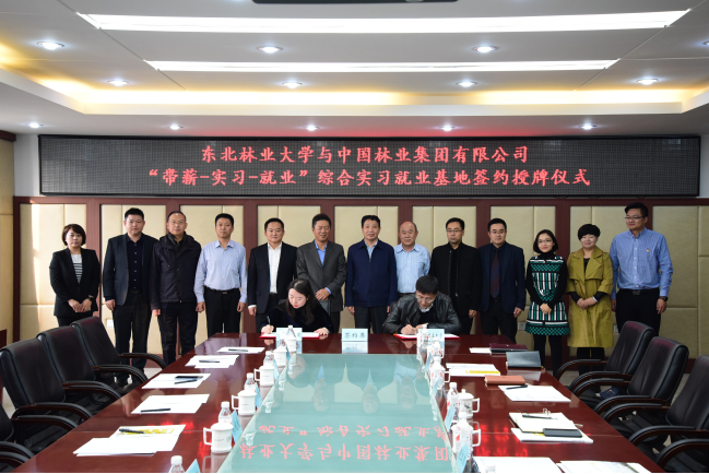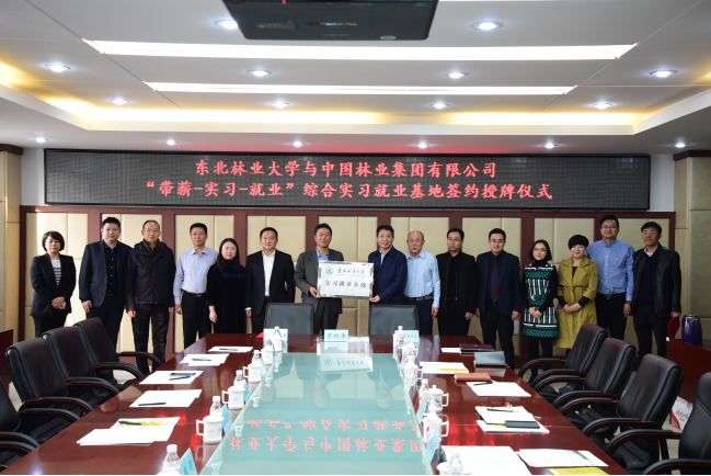 10月22日下午,东北林业大学与中国林业集团有限公司“带薪-实习-就业”综合实习就业基地签约授牌仪式在综合办公楼808会议室举行。