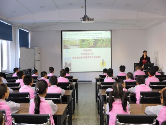 老师,这里看到的植物怎么放在瓶子里呢?这么大的植物为什么放在房间里面养啊?叶子的背面原来有这么多孔孔啊?9月25日,“小小科学家”走近实验室暨林木遗传育种国家重点实验室开放交流活动在东北林业大学林木遗传育种国家重点实验室顺利开展,300余名来自工农兵小学四年级的学生在神秘的科学殿堂里目不暇接。