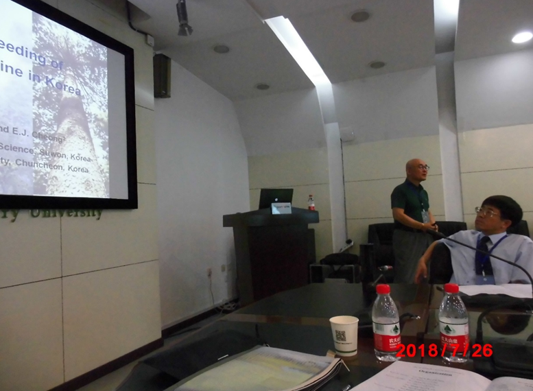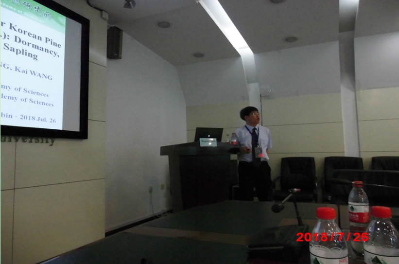 会议为期五天,参会学者和研究生近50位,其中来自韩国、俄罗斯和孟加拉国的外国学者和研究生15人。研讨会期间特邀3位著名学者做大会报告,7位学者做大会主题报告,5位研究生介绍他们的研究成果,1位学者提交墙报报告。学术研究会后与会人员实地考察红松科研和生产基地。
