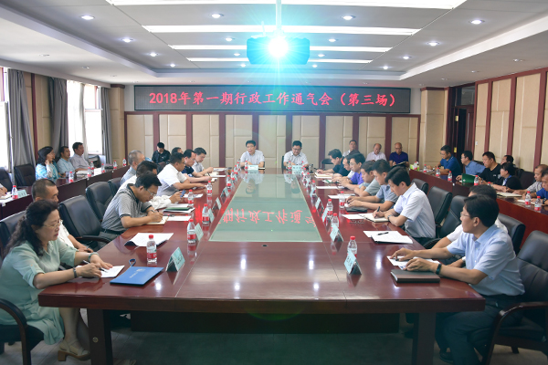根据学校党委工作部署和安排,7月6日上午,2018年第一期第三场行政工作通气会、服务部门汇报会在综合办公楼8楼会议室召开。在家的学校领导,相关职能部处负责人参加了会议。校长李斌主持会议。
