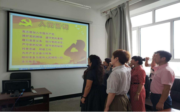 主题党日活动分两部分,第一部分是重温入党誓词,由支部书记包玉华带领全体党员重温入党誓词。面对鲜红的党旗,全体党员紧握右拳,不忘初心,激情满怀,齐声宣读入党誓词。重温入党宣誓的神圣时刻,让现场每位党员深刻感受到新时代肩上的责任和使命。