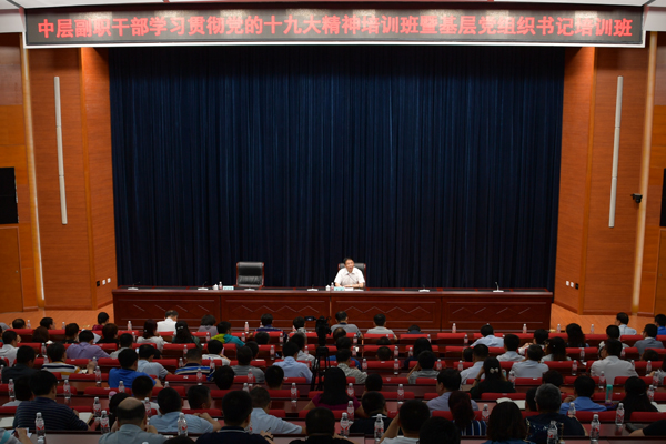 6月14日下午,校长、党委副书记李斌以《新时代 新思想 新担当 新作为 加快推进学校“双一流”建设》为题,在成栋楼4楼会议室,为学校中层副职干部学习贯彻党的十九大精神培训班暨基层党组织书记培训班学员上了一堂生动的党课。全体中层副职干部、教工身份的党支部书记参加了党课学习。