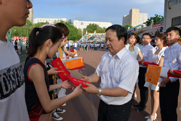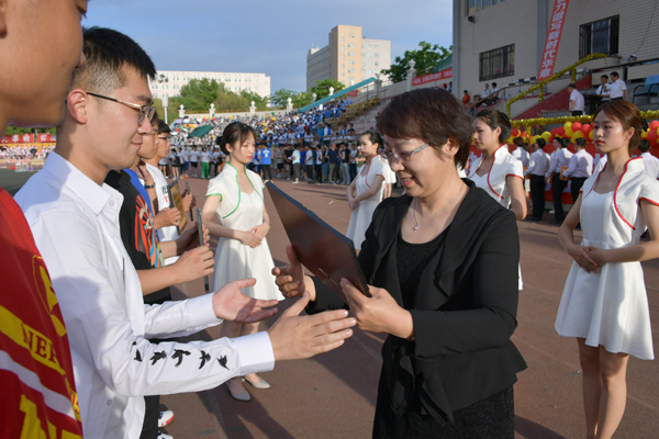 校领导分别为获得各项奖励的集体和个人代表颁发了奖牌。观众们用热烈的掌声向获奖者表示祝贺。