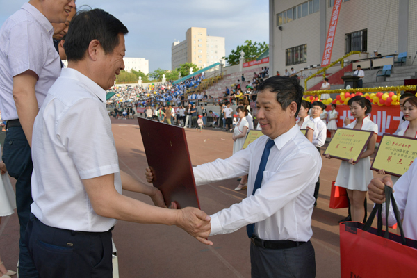 6月1日下午,学校第五十一届田径暨阳光体育运动会圆满完成各项赛程,在田径场举行了闭幕式。闭幕式由体育部直属党支部书记、主任孟令滨主持。
