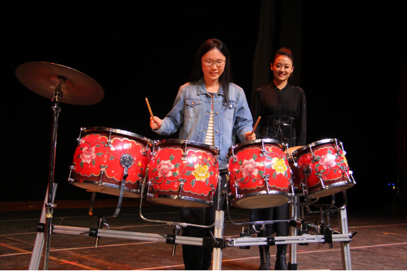 天山脚下,春意盎然,牛羊遍野,草场无边。维吾尔族演奏家带来的热瓦普独奏《欢乐的春天》让观众领略到了大美新疆的秀丽风光。民族排鼓表演《凯旋》,节奏鲜明,强劲有力,将力与美完美结合,引得现场观众阵阵欢呼和喝彩。互动环节,演奏家邀请东林学子上台体验排鼓,更是将现场气氛推向高潮。