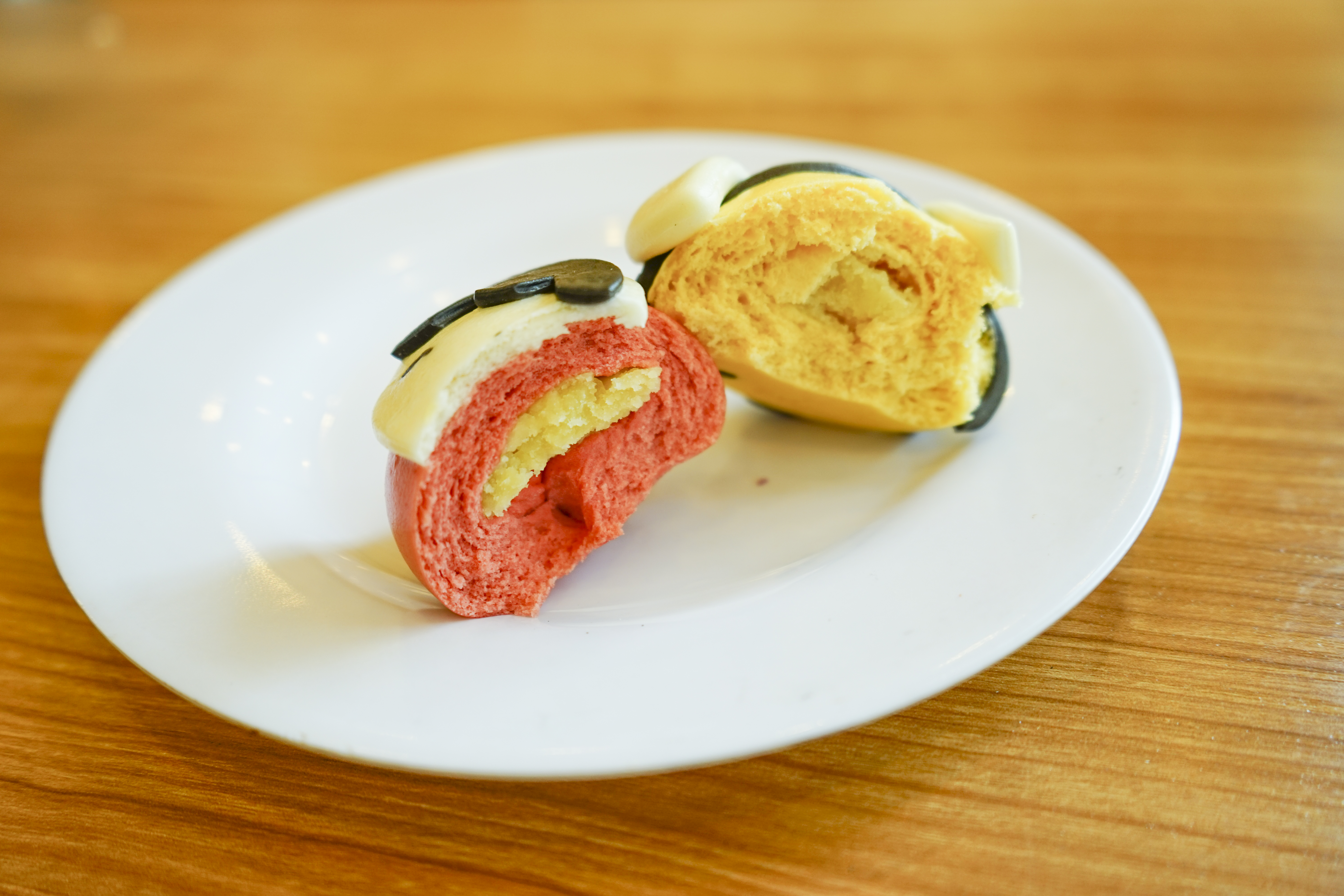 这些网红面点,是三位面点师傅利用备餐之余的休息时间制作的,每个都需要花费数分钟造型,而复杂的“招财猫”是三个人用了一个多小时才配合完成的,因此更要限量出售。网红面点创始人王幸颖表示,这些面点的“颜料”全是红心火龙果、菠菜、胡萝卜、蝶豆花等蔬果花朵榨汁而来,绝对没有色素等添加剂。