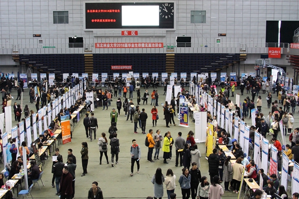 4月11日,东北林业大学2018届毕业生春季供需见面洽谈会在校体育馆举行,来自北京、上海、广东等全国多个省(直辖市)、自治区的222家用人单位来校广揽英才,岗位涉及机械、电子、计算机、园林、材料、生物、会计、贸易等众多专业,涵盖技术、管理、营销、法务、人力、培训等多个岗位,为毕业生提供求职就业的广阔平台。