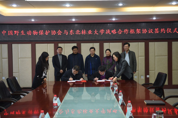 12月29上午,中国野生动物保护协会与我校战略合作框架协议签约仪式在综合办公楼808会议室召开。学校总会计师伍海泉与中国野生动物保护协会秘书长李青文共同签署了《中国野生动物保护协会与东北林业大学战略合作框架协议》。中国工程院院士马建章、中国野生动物保护协会组织处处长王宁、中国野生动物保护协会办公室主任钟义及我校野生动物资源学院、校友工作办公室等相关部门负责人出席了仪式。