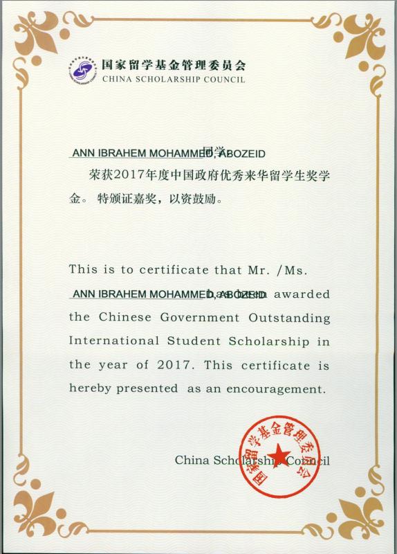 凭借突出的学术成果和各方面优异的表现,ANN在与全国279所高校的8万余名国际研究生的竞争中脱颖而出,成为获评“优秀来华留学生奖学金”的185名学生之一。