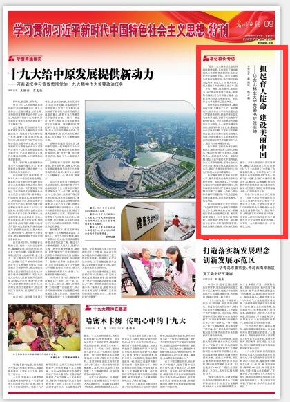 为学习贯彻十九大精神,《光明日报》开辟了《学习贯彻习近平新时代中国特色社会主义思想特刊》。日前,光明日报记者邀请我校党委书记张志坤谈了学习十九大精神的体会。张书记表示,作为以林科为优势的高等学校,东林要切实肩负起培养“绿色人才”的育人使命,把立德树人作为学校立身之本,进一步统一思想、振奋精神、激发活力,全力推进我校两个涉林一流学科的建设,努力培养德才兼备、全面发展的生态文明建设者。