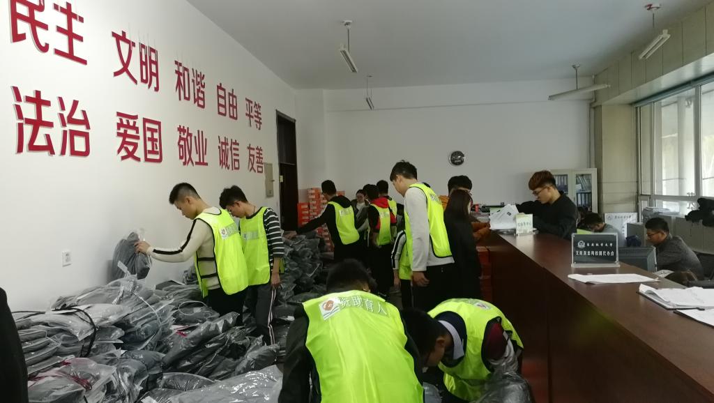 志愿者精心准备棉衣物
