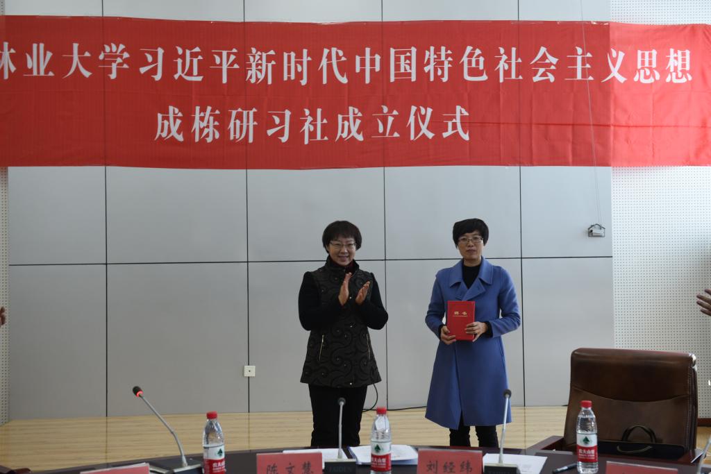 10月30日14时,东北林业大学“习近平新时代中国特色社会主义思想成栋研习社”成立仪式在颐丰园学生活动中心举行。校党委副书记陈文慧出席并讲话,校团委书记艾曦锋主持仪式。