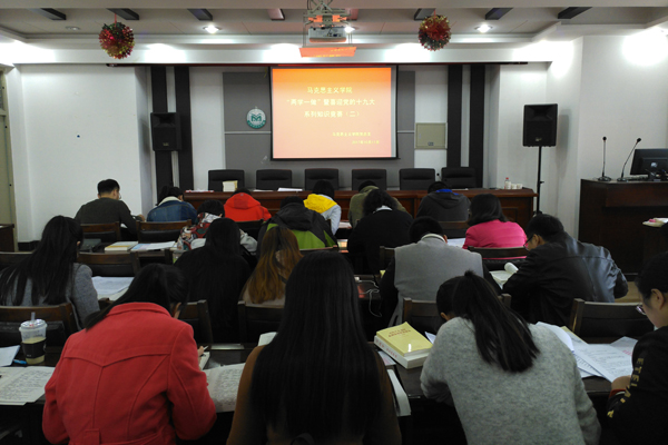 10月11日,马克思主义学院举办了“两学一做”暨喜迎十九大系列知识竞赛活动,竞赛题紧扣“两学一做”学习教育内容,以习近平总书记“7·26”讲话,以及在建党95周年、全国高校思想政治工作会议、全国哲学社会科学工作座谈会上的讲话精神和治国理政新理念新思想新战略为重点,同时覆盖了党章党规等内容。