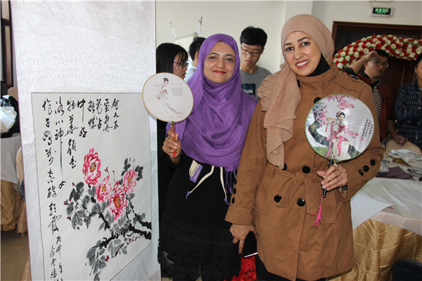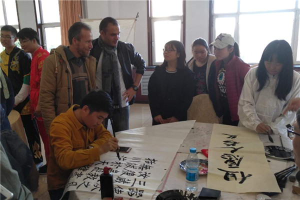 留学生欣赏中国传统书画展示