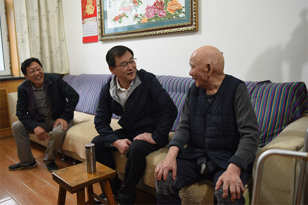在学校家属区周文林小儿子的家中,蔺海波副书记关切地询问周老的身体和生活情况。“老人家,您是哪年退休的?”“现在身体怎样?”在得知老人身体基本健康,饮食作息都正常后,蔺海波副书记表示,老人良好的心态和健康的生活方式,是长寿的秘诀,希望老人家继续保持,更加长寿。蔺海波副书记还询问老人是否有需要学校协调的事情,周文林老人的2个儿子表示,学校近年的福利待遇很好,真没有麻烦学校的事情了。