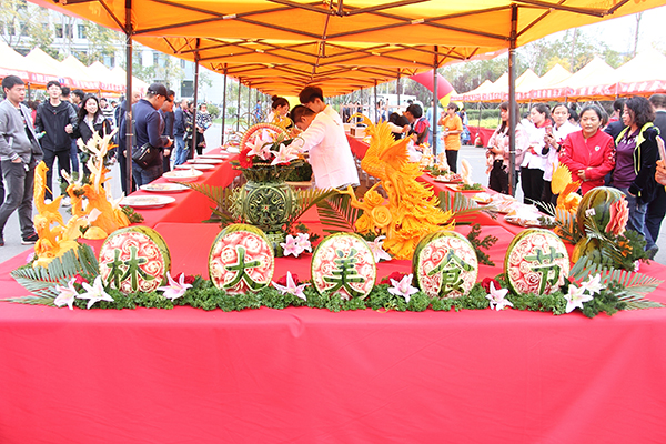 本次校园美食节共分四个区域,共51个展棚,其中有“检测器材”“原材料”“调料”“副食”“雕刻”“主食”“熏酱”“炝拌菜”“花摆”“清真食品”“饮品”等特色展示,还有免费品尝、学生烹饪展示、学生互动(中外学生包饺子)、留学生展示等交流共享活动,中外学生自发组织的即兴歌舞表演和外国食品免费品尝成为本次活动一大亮点。此次美食节,得到与会嘉宾和广大师生的一致好评,为广大师生奉上一场盛大的美食盛宴。