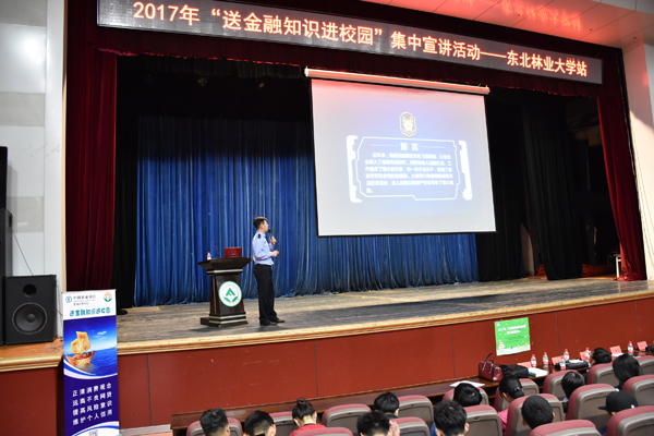 活动主要围绕金融知识普及和金融风险防范两大主题,重点突出互联网金融业务发展介绍及校园网贷风险防范。在活动中,中国农业银行黑龙江省分行宣讲员马静给同学们普及金融知识,远离“非法网贷”、黑龙江省证监局法制工作处处长郭之栋和同学们分享了“树立正确的金融理念,保护自身权益”、黑龙江省公安厅刑事侦查总队反诈中心王泽峰警官通过数据警示告诉同学们“如何识骗以及被骗后如何处置”。三位同志通过实际工作中大量的真实案例,让在场的同学们深感震撼。园林学院2014级学生李海微说:“平时没有觉得金融诈骗和自己有什么关系,通过今天的活动,让自己意识到,要时刻关注金融安全,尤其是涉世未深的在校学生,更要有良好的消费习惯和积极向上的生活态度,让自己真正的远离金融诈骗和不良网贷。”