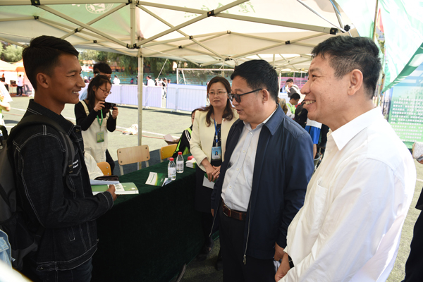 在迎新集中工作区,校领导在每个学院前驻足,详细了解迎新准备工作和新生报到情况。当得知林学院招收的研究生人数首次超过本科生人数时,校领导表示这种发展趋势非常好,为我校建成教学研究型大学奠定了良好基础。