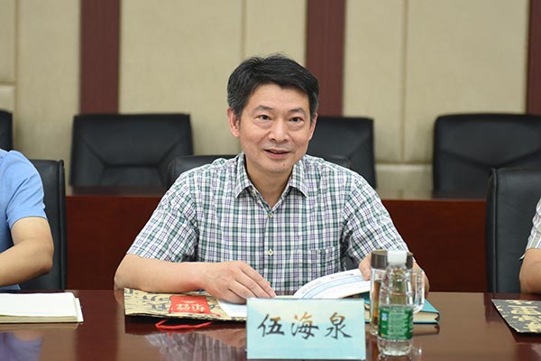 我校总会计师伍海泉在综合办公楼第八会议室接待来访客人。参加座谈会的还有我校计划财务处、教务处、人事与专家工作处、科学技术研究院、发展规划与学科建设办公室等相关部门负责人。