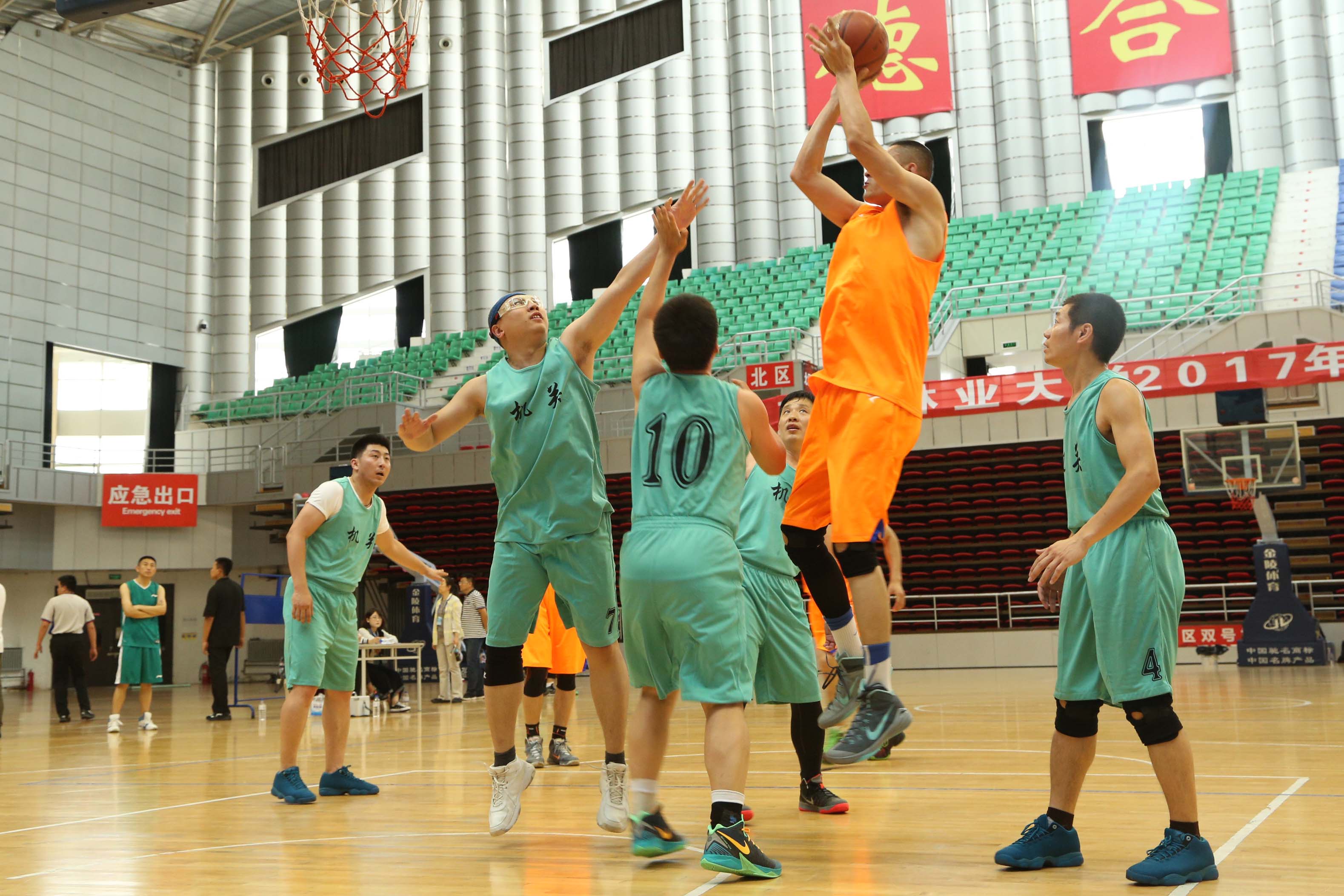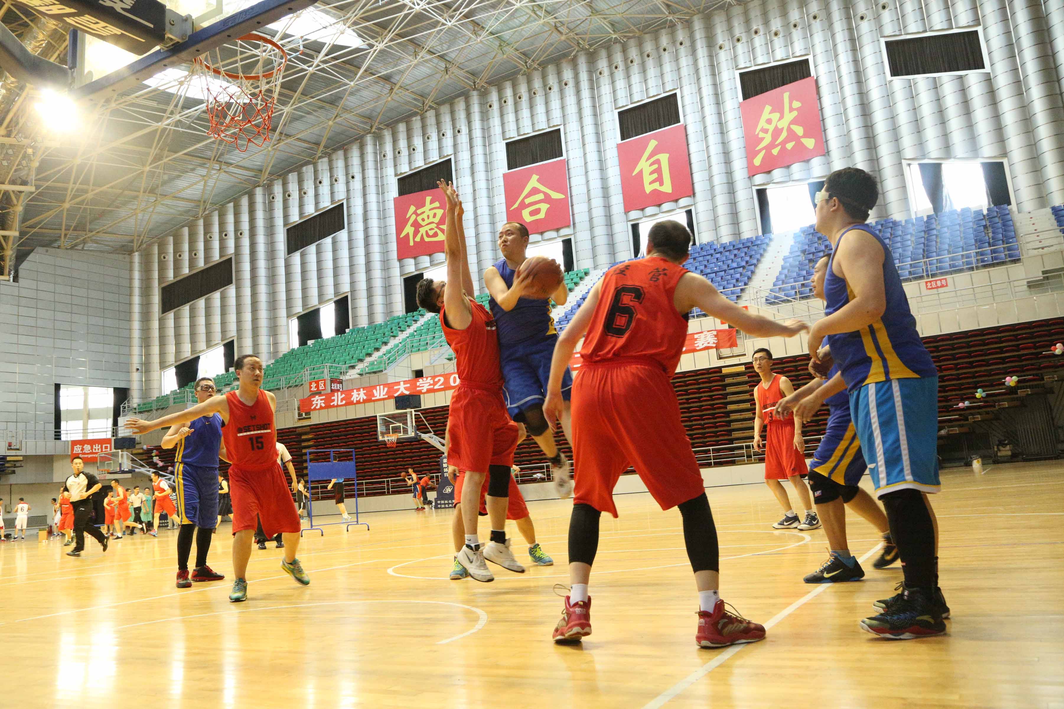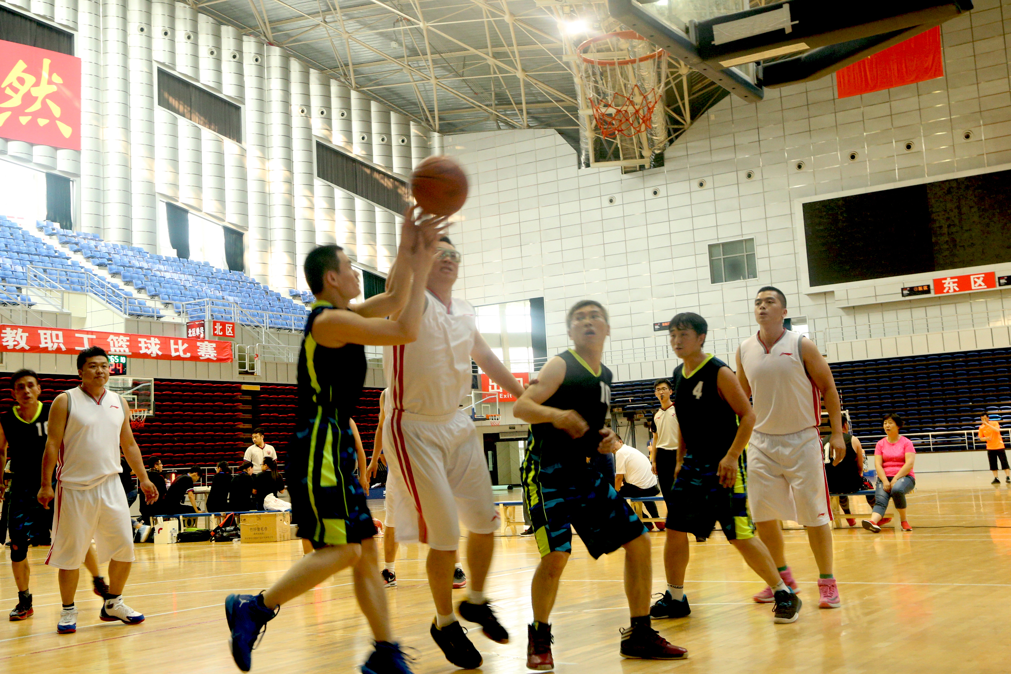 本届教职工篮球赛作为本学期学校组织的第三项大型群体赛事,各工会代表队积极备战,全力以赴,在赛场上展现出很高的竞技水平。在半决赛中,实力相当的机电工程学院与后勤服务总公司两队在均有主力队员因伤缺阵的情况下,依然保持了高水准的技战术水平。乙级队的各支队伍的实力显示出良好的上升势头,经济管理学院首次组队,小组赛取得两胜一负的好成绩。六天的多场次比赛,过程跌宕起伏,扣人心弦。