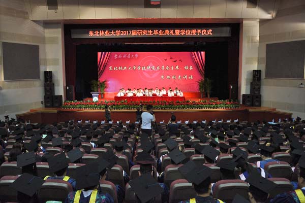 9时40分,典礼在雄壮的国歌声中开始。中国工程院院士马建章宣读了授予博士、硕士学位人员名单。党委副书记陈文慧宣读2017届校优秀毕业研究生名单。主席台就坐的领导向2017届校优秀毕业生荣誉称号获得者颁发了荣誉证书。