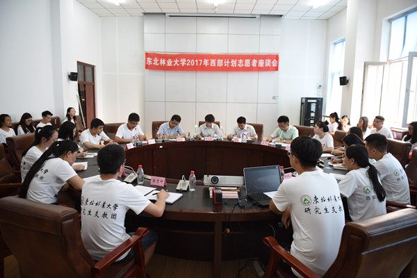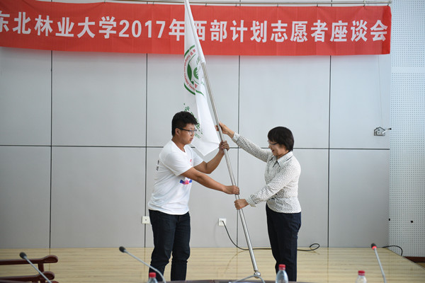 座谈会上,志愿者们抒发了对母校、对老师的感激和不舍之情,深情回顾了浓墨重彩、一生难忘的大学生活,表达了去西部和基层服务奉献、支教扶贫的信心与决心,也憧憬、规划着即将开始的志愿服务工作。在谈到参加研究生支教团项目的初衷时,第十九届研究生支教团团长、工程技术学院孙长胜畅谈了大学期间参加志愿服务活动给他带来的成长,并希望通过参加研究生支教团让西部地区的孩子们感受到生活的多姿多彩,用好一年的时间,做好一位知心老师。谈到迎接即将开始的志愿服务生活时,西部计划志愿者代表、外国语学院丁晓飞同学说:“在志愿服务期间,我们将严格要求自己,做到脚踏实地,不怕多做事,不怕做小事,以一流的优质服务,一流的精神状态,展示当代大学生的亮丽风采,树立东北林业大学的良好形象。”第十九届研究生支教团代表、土木工程学院王畅同学回顾了加入支教团以来参加的系列培训以及收获。