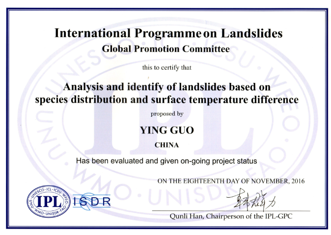 本届论坛得到了联合国教科文组织(UNESCO)、联合国国际减灾战略计划(INISDR)的重视和支持。我校单炜教授、郭颖博士被选为本届论坛国际科学委员会委员。我校寒区科学与工程研究院获“2017-2020滑坡减灾全球卓越中心”称号,我校寒区科学与工程研究院副院长郭颖博士主持项目“基于地表植物差异分布和温差的滑坡判定”获得国际滑坡研究计划项目IPL-203立项。本届论坛共授予20个政府和非政府组织机构获得“滑坡减灾全球卓越中心”称号。