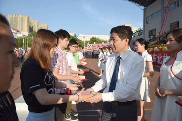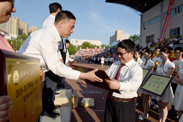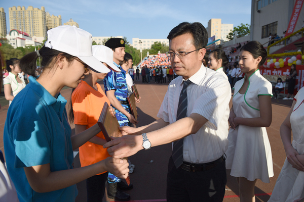 校长李斌为运动员代表颁奖