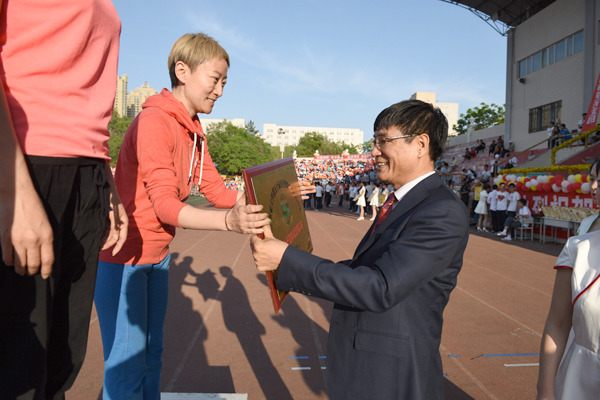 副校长赵雨森为运动员代表颁奖