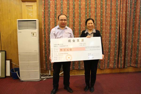 院党委书记肖向红代表野生动物资源学院接受高安祥副总裁捐赠的支票