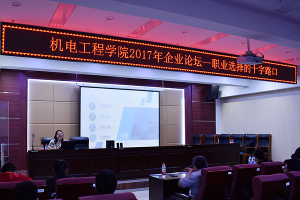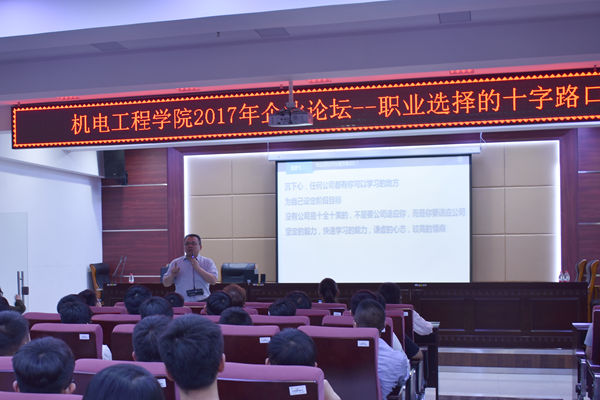 为深入推进学校“树人工程”的有效实施,培养学生社会责任感、创新精神和实践能力,机电工程学院坚持“走出去,请进来”的工作思路,积极邀请企业进校,开办企业论坛,充分利用企业资源,帮助学生明确奋斗目标和努力方向、规划成长路径,为学生成长成才助力。
