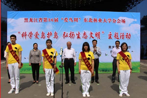 在我校分会场,中国工程院院士、野生动物资源学院名誉院长马建章,副校级领导周宏力同相关部门负责人以及野生动物资源学院师生代表、各学生社团代表等500余人参加了活动仪式。分会场活动以“科学爱鸟护鸟 弘扬生态文明”为主题。