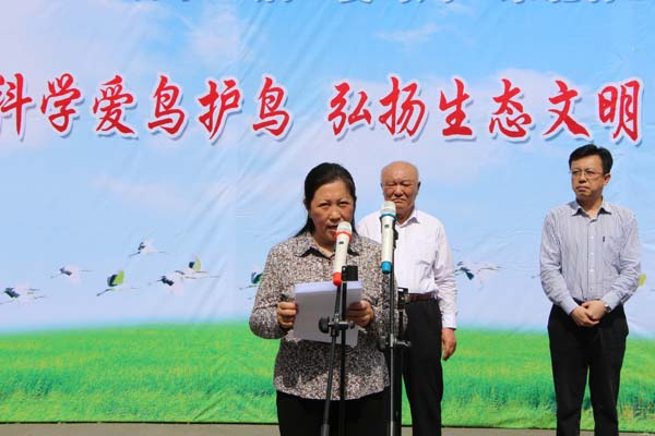 副校级领导周宏力在活动仪式上讲话。他肯定了“爱鸟周”活动开展35年来对于保护鸟类资源的重要意义,并表示我校会为环境保护事业培养更多优秀人才,为繁荣生态文化提供更多智力支持,呼吁全社会共同爱鸟护鸟,为鸟类营造绿色家园。