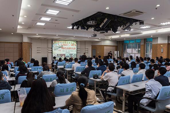 5月11日晚6时,第十期成栋书院“相约两小时”领读活动在图书馆如期举行。我校工程技术学院辅导员、讲师、学院纪委委员黄鹏作为本期的领读嘉宾,以近日热播的反腐题材电视剧《人民的名义》开题,带领大家领读两部反腐题材的文学作品《人民的名义》和《追问》。党委宣传部、图书馆、校团委的主要负责同志和百余名师生参加了此次活动。报告厅内座无虚席,甚至还有学生席地而坐,聆听领读者的解读。