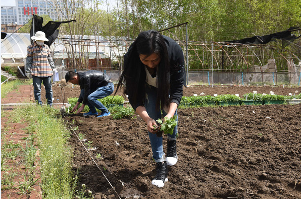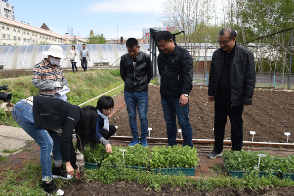 5月7日,在生命科学学院花卉生物工程研究所,所长丁兵在地头儿手把手地给来自泰来县的农户教授种植经验。“这花要是在咱们那儿种成了,经济效益必定非常可观。”让泰来县宏程村村党支部书记张树库信心满满的花,就是他们正在学习种植技术的我校科研成果——可以在寒冷天气依然盛开的寒地露地菊。