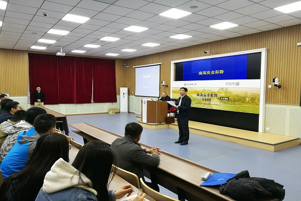 尹卓将军从仲裁案后南海安全形势基本面没有变化,南海形势出现了某些新的重大趋势和中国在南海上的基本立场这三个方面给同学们讲授南海现在所面临的安全形势,通过南海局势的分析,特别是在其中美国、东南亚国家所扮演的角色,我国所持有的态度和应对对策,加强了对大学生的国土认识、海洋权益、海外利益的教育。