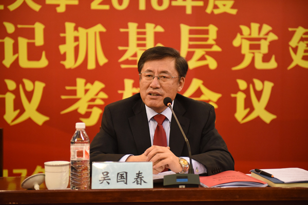 党委书记吴国春在会上讲了话。他表示,可以看出我校二级党组织书记已经真正把党建的重任扛在了肩上,各分党委组织活动情况较好,但还存在基层党组织活动形式单一,围绕大局、促进工作、增强基层组织战斗堡垒作用还不突出;做深入细致的思想工作不够,党员先锋模范作用还不突出;全方位育人的联动做得不够等问题。